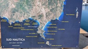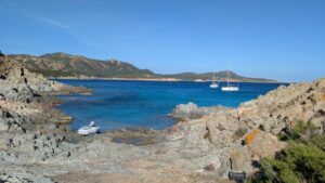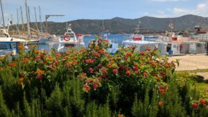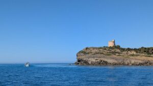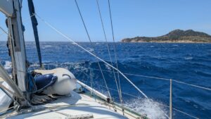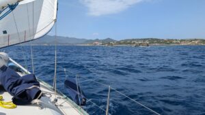 Ich sah eine Schule Delphine, und Sardinien kam bereits in Sicht. Als krönenden Abschluss hatte ich die letzten Stunden tollen Segelwind bis zu meinem Ziel, die Marina Villasimius, ganz im Südosten von Sardinien. Ich meldete mich über Funk (Navily Reservierung), ein Marinero empfing mich im Schlauchboot und geleitete mich zum Liegeplatz. Eine schöne Marina, nicht allzu groß, aber gepflegt, jedoch mit minimaler Sanitärausstattung um50€/N inkl. Wasser/Strom. Ich war froh angekommen zu sein, denn in der Nacht begann bereits der NW-Wind – ich hatte für die Überfahrt gerade noch ein richtiges Wetterfenster erwischt.