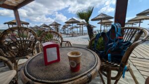 Es windete ganzen Tag, durch den nahen, tollen Sandstrand und der netten Umgebung war es aber nicht so schlimm, es gefiel uns. Infrastruktur, wie einen kleinen Supermarkt, gab es nicht. Lediglich ein kleines Cafe und beim Strand eine typische Bar.