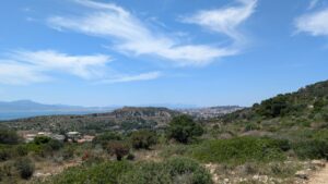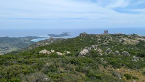 Damit sich mein Radius etwas erweiterte nahm ich mir tags darauf ein E-Bike (27€/24h), ein normales Rad war nicht zu bekommen. Mit diesem E-Bike fuhr ich dann zum Monte „Monte Bruncu Cani Prandu“ 491m. Ein anstrengendes Vergnügen, denn das E-Bike hatte keine Schaltung und nur zwei Gänge die automatisch gewählt wurden…. Wenn es steiler bergauf ging musste ich im Wiegetritt fahren, da die Übersetzung so schlecht war, bzw. gab es ein paar Abschnitte wo es nur mehr mit Schieben ging. Insgesamt aber doch besser als rauf/runter gehen.