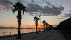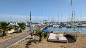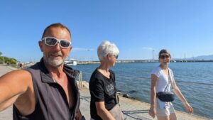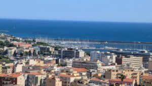 Ein rustikales Platzerl, aber sehr relaxt und sicher eine der günstigsten Stadtmarinas in Italien. Hier wartete ich das Eintreffen meiner Frau Andrea und unserer Freundin Martina ab. Dabei besichtigte ich In diesen drei Tagen die Stadt, fuhr mit einem E-Bike bis zum östlich gelegenen Stadtstrand, wanderte auf eine Aussichtshügel, kaufte ein und erledigte beim Boot ein paar Dinge. Der Wind wehte inzwischen beständig mit 4-7 Bft, wobei es immer am Nachmittag gegen 16.00h am meisten kachelte. Die Sonne scheinte zwar beständig, es gab aber nur an den geschützten Stellen angenehme Wärme. Irgendwie zeigte sich dieser Mai von seiner kühlen, windigen Seite. Doch ich will nicht klagen. Rückblickend betrachtet hatte ich für meine Überfahrt von Malta eigentlich nur das von mir gewählte Zeitfenster, danach gabs ausschließlich Westwind und ich hätte nicht nach Sardinien übersetzen können.
