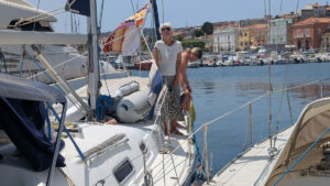 Nächsten Vormittag gings motorsegelnd, ohne Stress weiter zur Insel San Pietro bis zum Hafen des Hauptortes Carloforte. In diesem netten Ort hatte ich die Marina Sifredi für ein Jahr als Stützpunkt ausgewählt (3100€). Er wurde mir von einem befreundeten Seglerpaar empfohlen und hat uns gleich mit dem 5 Tage-Festival „GIRO TONNO“ empfangen. In der Marina wusste man schon von unserer Ankunft, ein Liegeplatz war gleich zugeteilt und die Einweisung erfolgte von der sympathischen Managerin Carmela. Scheint wirklich ein toller Platz zu sein. Die gesamte Anlage war sehr gepflegt und lag quasi beim Ortszentrum. Lediglich der Schwell von den einlaufenden Fähren wirkte manchmal etwas störend.