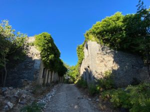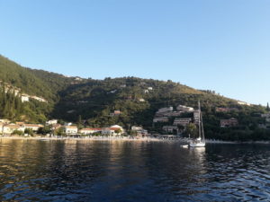 Von Paxos aus segelten wir wieder zum Festland nach Sivota (Marina Sivota Reservierung Tel: 0030 6944354091) tags darauf abermals nach Westen in die Bucht von Petriti (Korfu Südost) und wiederum einen Tag später retour zum Festland nach Sagiada. Hier wollte ich schon immer mal anlegen, erwartete mir allerdings nicht viel. So knapp bei der albanischen Grenze wird es kaum was geben,… dachte ich mir. Doch weit gefehlt – ein kleiner Hafen (Einfahrt bis ca 2m Tiefgang möglich) mit freien r.k. Liegeplätzen (inkl. Wasser),  mehrere Lokale am Kai, freundliche Bedienung, gutes Essen zu günstigen Preisen (ca 20-30% weniger) und eine sehr entspannte Atmosphäre trugen zu einem angenehmen Aufenthalt bei. Bevor wir einen Tag später wieder los fuhren wanderten wir in der Früh noch hinauf nach „Alt Sagiada“ und bestaunten die überwucherten  Gemäuer dieses verlassenen Dorfes.