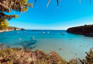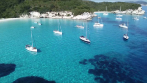 Am nächsten Morgen hatten wir beim Kaffee schon einige Wespen und starteten deshalb bereits um 07.30h den Motor. Gute zwei Stunden später ließen wir in einer der türkisen Buchten von Anti Paxos den Anker fallen. Ein Traumplatz der alle Klischees erfüllte… zumindest bevor die ersten Ausflugsschiffe erschienen und weitere Segler die letzten freien Ankerplätze ausfüllten. Ist aber eh verständlich, denn diese schöne Ecke wollen viele sehen. Unser Übernachtungsplatz befand sich dann etwas nördlich in der Mongonissi Bucht von Paxos. Dort ist es auch nett und am frühen Nachmittag gab es noch einige freie Plätze am Kai. Kleine Wanderungen zur nahen Steilküste und zum Tripitostor (natürlicher Steinbogen an der Westküste) rundeten diesen Aufenthalt ab.