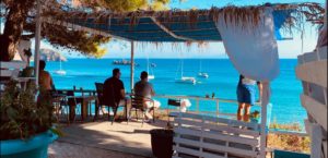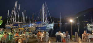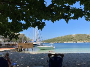 Unser Törn sollte uns zum Ambrakischen Golf und weiter nach Korfu führen. Doch ein gesperrter Lefkas Kanal machte uns einen Strich durch die Rechnung und so ging es nach einem Stopp bei Karnagio/Meganisi vorerst nach Sivota/Südelefkas und wieder einen Tag später früh morgens zur Lefkas Westküste. Bei herrlichem Wetter und teilweise tollem Segelwind fuhren wir Richtung Norden und ließen am Nachmittag in der „Two Rock Bay“ (ca 5NM südöstlich von Parga) unseren Anker fallen. Wieder mal ein neuer Platz für mich und noch ein ansehnlicher dazu. Eine herrliche geschützte Bucht mit großzügigen Ankerflächen. Man muss allerdings etwas schauen und wirklich eine Sandfläche aussuchen, denn es finden sich auch felsige Bereiche mit diversen Verhedderungsmöglichkeiten. Am Scheitelpunkt der Bucht lag ein gut besuchter Badestrand und etwas oberhalb eine nette Freiluftbar mit allerlei Getränken und ein paar Speisen. Eigentlich wollten wir hier kochen, doch die Aussicht bei der Bar hatte uns so gut gefallen, dass wir das Abendessen auch gleich bestellten. Es wurde ein gelungener Abend.