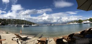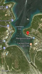 Nach etwas über 50 NM liefen wir in der Mongonissi Bay im SO von Paxos ein, hatten abermals Glück und fanden am kleinen Kai einen Liegeplatz. Ein sehr schönes Fleckchen diese Bucht. Mit Badestrand und zwei Restaurants, ca. 3 Km (Straße) vom Hauptort Gajos entfernt.