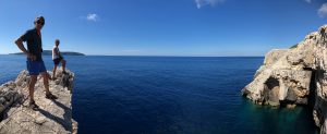 Hier gibt es nun bereits einen kleinen Marinabetrieb im Hafen mit Platzzuteilung etc. (1,4€ pro Meter, ohne Strom und Wasser + Steuer = 18€/N für uns). In der Nähe befinden sich aber auch sehr viele Ankerplätze, wobei Teile der Buchten jedoch öfters mit Bojen für Schwimmer gesperrt sind. Alles in Allem eine ganz angenehme Gegend. Während eines Morgenlaufes am nächsten Tag haben wir das sehr genau inspiziert .