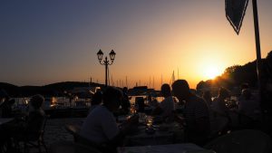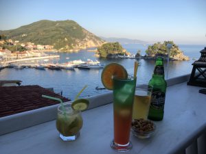 Von Lakka quer nach Osten bis Parga, wo wir ebenfalls im sehr kleinen Hafen einen Platz an der Kaimauer fanden. In Parga gab‘s Tourismus pur. Der riesige sichelförmige Strand war gespickt mit Sonnenschirmen und Liegen, umhüllt von einer lauten Technowolke. Bei uns war’s zum Glück ruhiger. Der abendliche Fußmarsch in die Altstadt von Parga und der Ausblick von der Festung war wie immer ein Genuss. Wir vergönnten uns diesmal sogar einen Sundowner vor dem Abendessen…