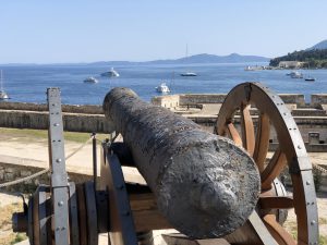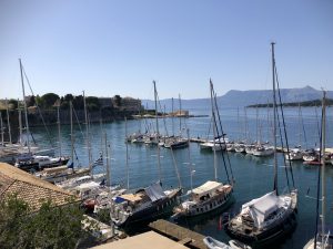 Zum Abschluss waren noch 23 NM nach Korfu zu bewältigen. Ganz easy mit Motor, bis zur Marina Mandraki auf der Nordseite der von weitem sichtbaren Festung.