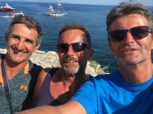 Nach einer ruhigen Nacht starteten wir mit einem Morgenlauf (Inselrunde Kastos) in den Tag. Peter kennt diese Gegend nicht, weshalb ich ihm in der kommenden Woche so viel wie möglich zeigen wollte. Walter war vor zwei Jahren schon mal an Bord der Golden Lady und hatte bereits etwas Erfahrung wie das bei mir so abgeht.